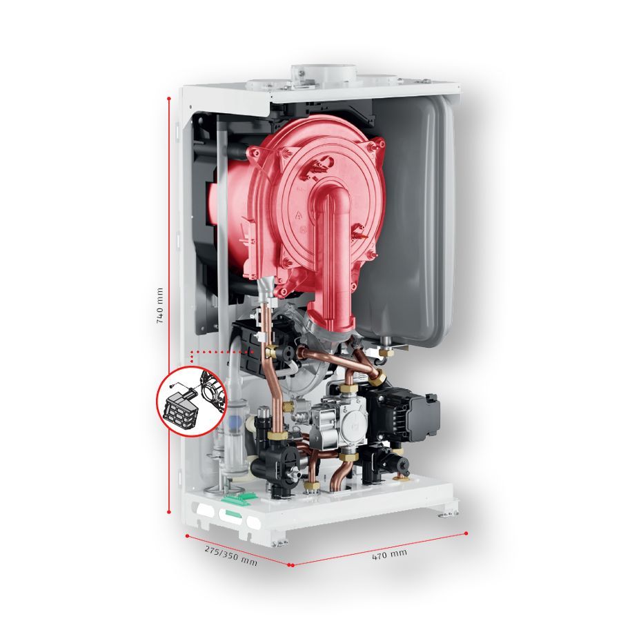 - Layout ottimizzato con sifone e valvola di sicurezza all'interno della caldaia.