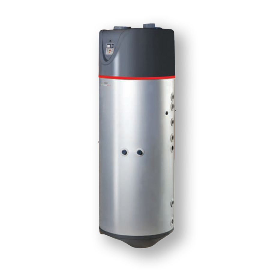 L'unità è costituita da una pompa di calore e da un bollitore. La pompa di calore, alloggiata direttamente nella parte superiore del bollitore, usa l'energia termica dell'aria per riscaldare l'acqua del bollitore della capacità di 300 litri.