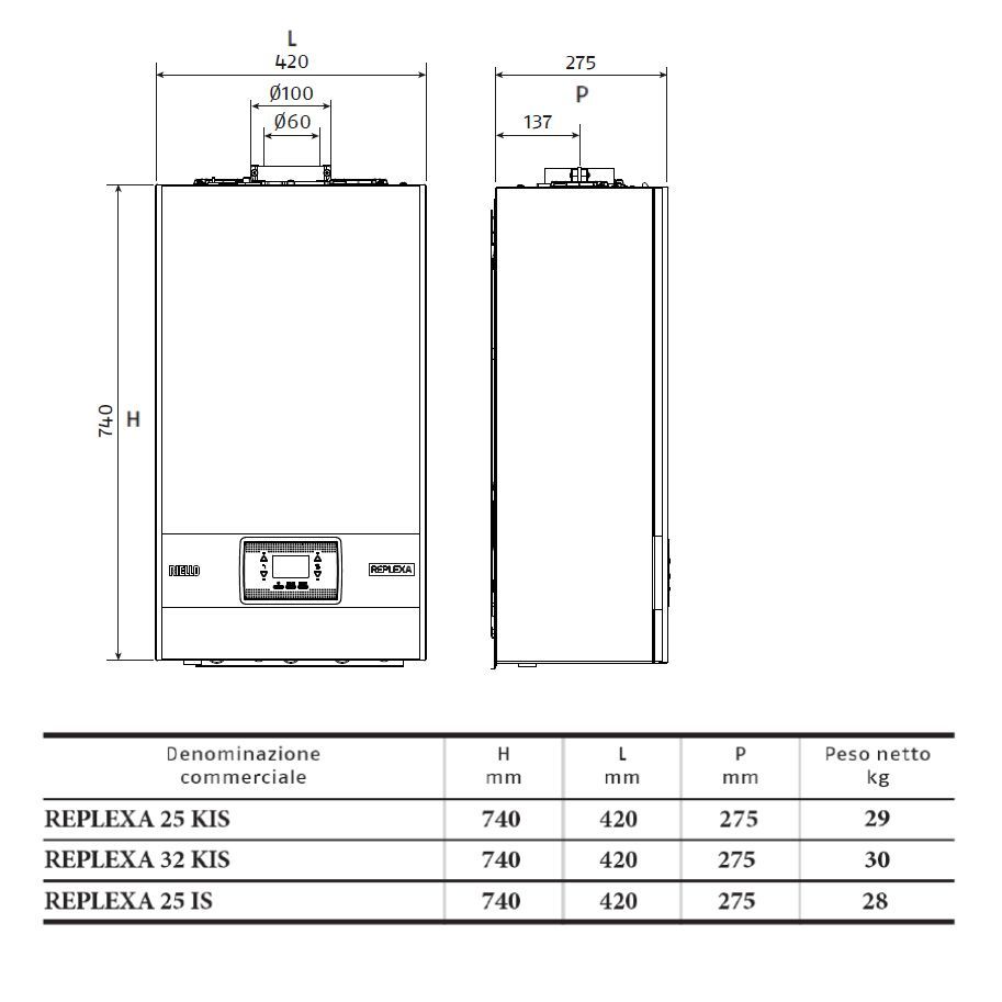 La nuova Riello Replexa è disponibile con potenze di 25 e 32 kW per le versioni combinate istantanee e 25 kW per la versione solo riscaldamento.