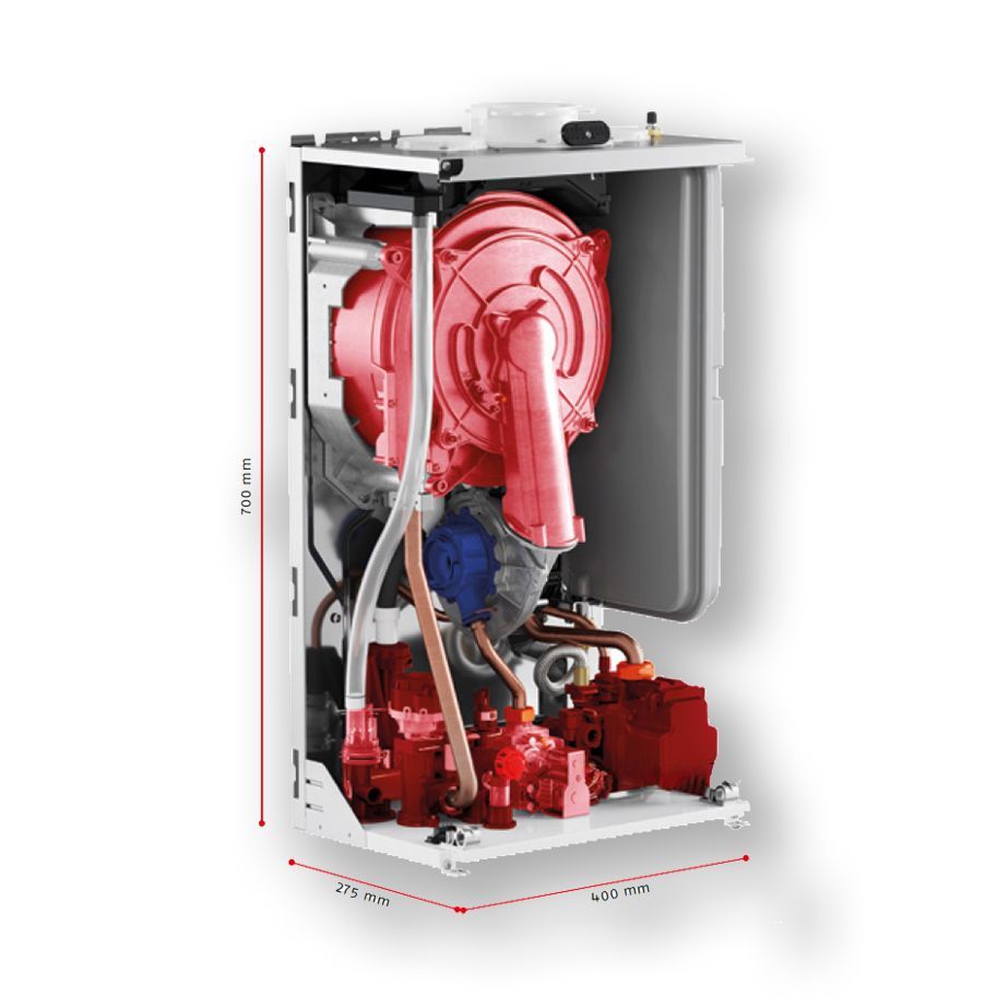 - Design moderno e lineare con copertura raccordi inferiori sotto-caldaia disponibile come accessorio per un'ottima integrazione estetica.