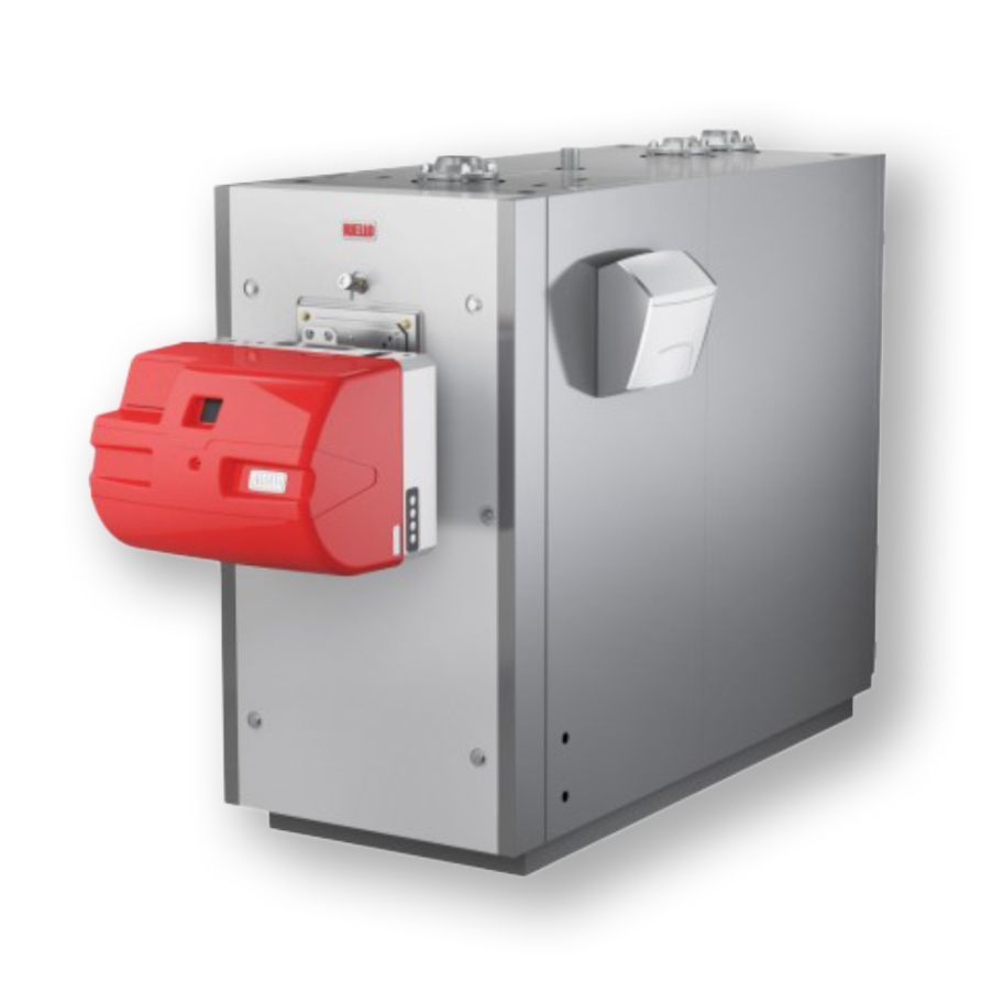 - Caldaie in acciaio inox a condensazione a tre giri di fumo ad alto contenuto d’acqua abbinabili a bruciatori di gas